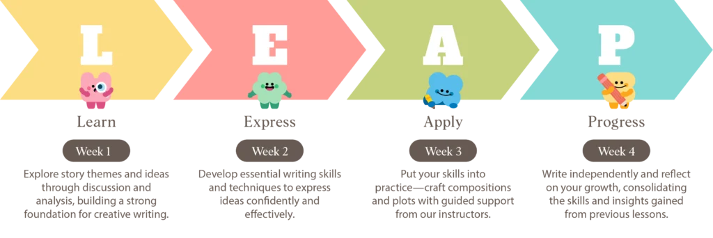 Our Primary Writing Programme helps children become confident, creative writers through the LEAP™ Curriculum. With scaffolded and independent exercises, students strengthen their writing prowess and their understanding of story themes, progressing step by step in a supportive, structured environment.